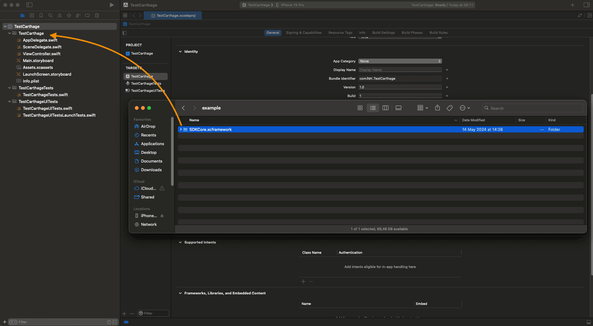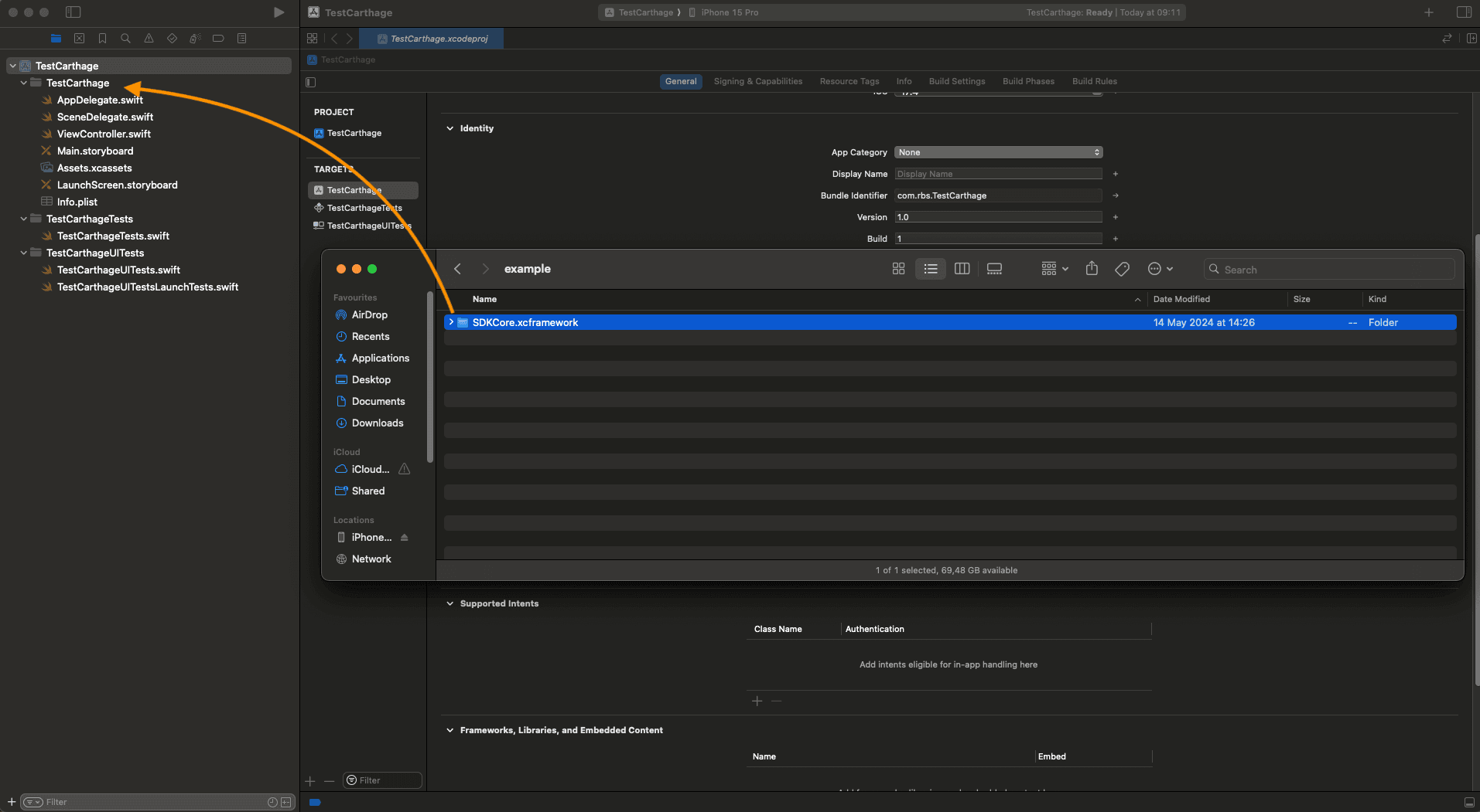 SDKCore.frameworkfile and add it to the project folder.
