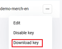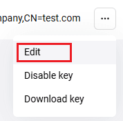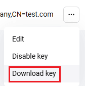 - Натиснете върху трите точки в реда с нужния сертификат и изберете Изтегляне на ключ (вж. изображението по-долу).