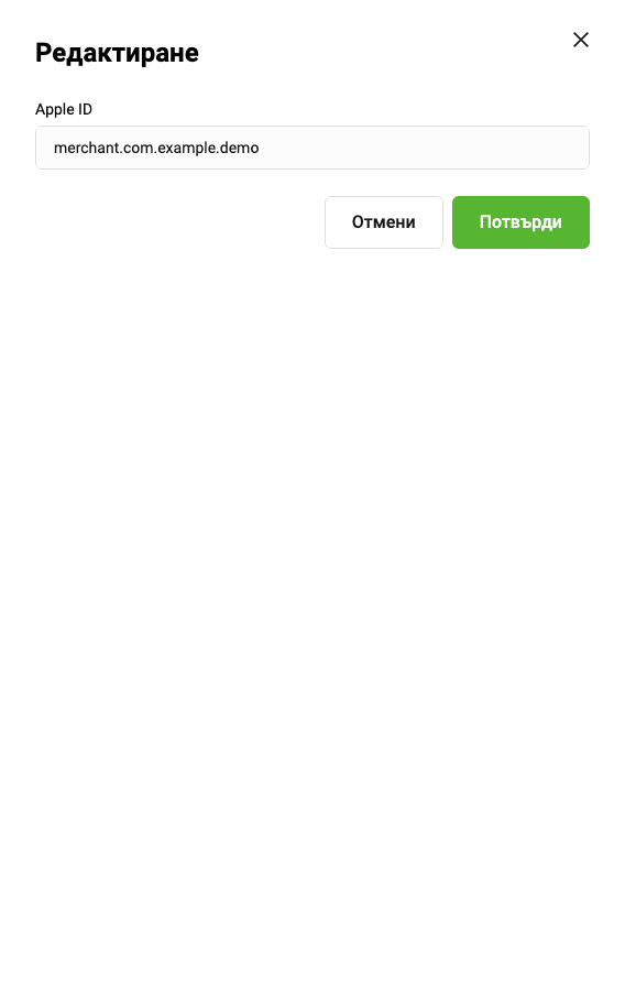 - Редактирайте полето Apple ID и натиснете Потвърди.