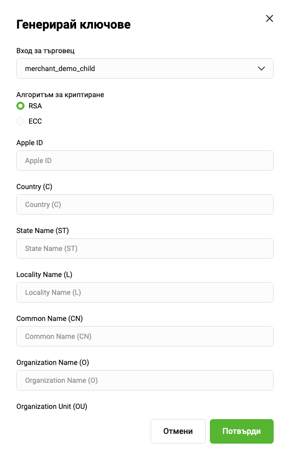 | Имате ключова двойка и регистриран в Apple Pay сертификат за публичен ключ |