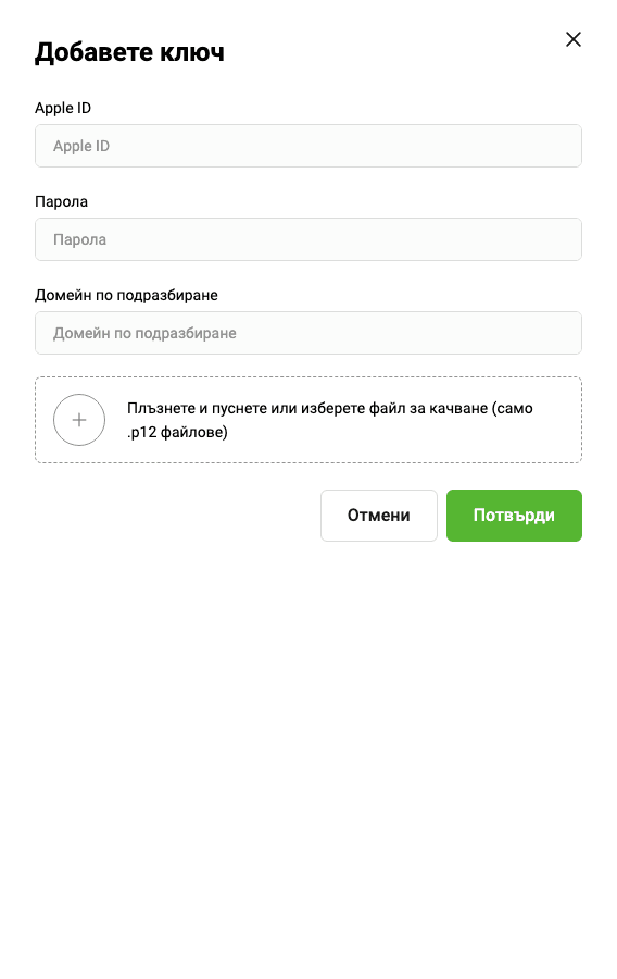 - В секцията Apple Identity натиснете Добавяне на ключ.