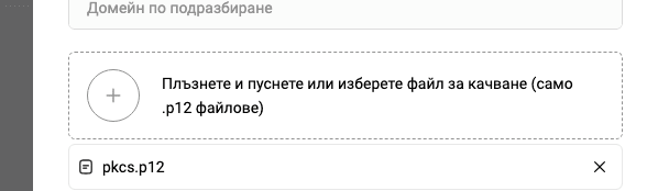 - Парола - Въведете паролата, защитаваща съдържанието на файла PKCS12.