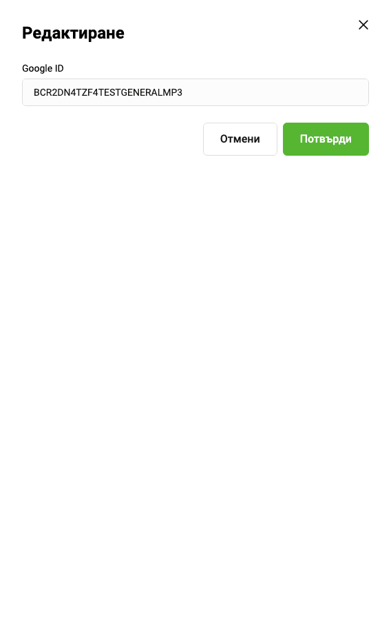 - Редактирайте стойността в полето Google ID и натиснете Потвърди.