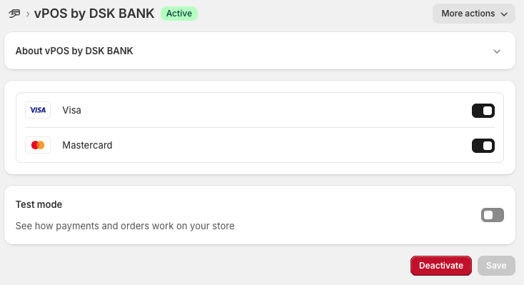 | Test/Live mode | Defines plugin work mode: test or production. |