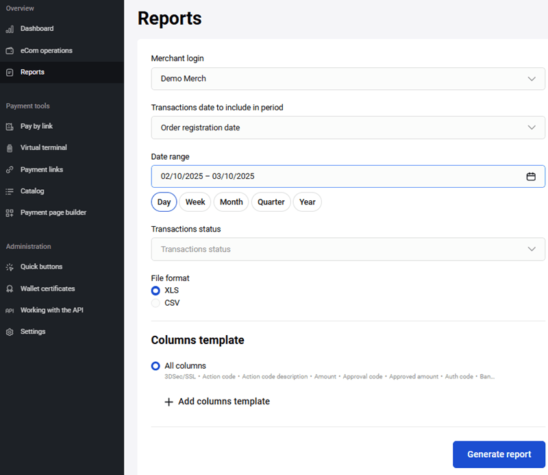 In case of a two-phase payment, the funds are first reserved on the client's account (order status is Approved) and only then are credited to the merchant's account (order status is Deposited). It is possible to configure that the final transfer takes place automatically after a certain time set in the system, e.g. after 24 hours. But this operation can be performed manually from the merchant's Personal Area.
