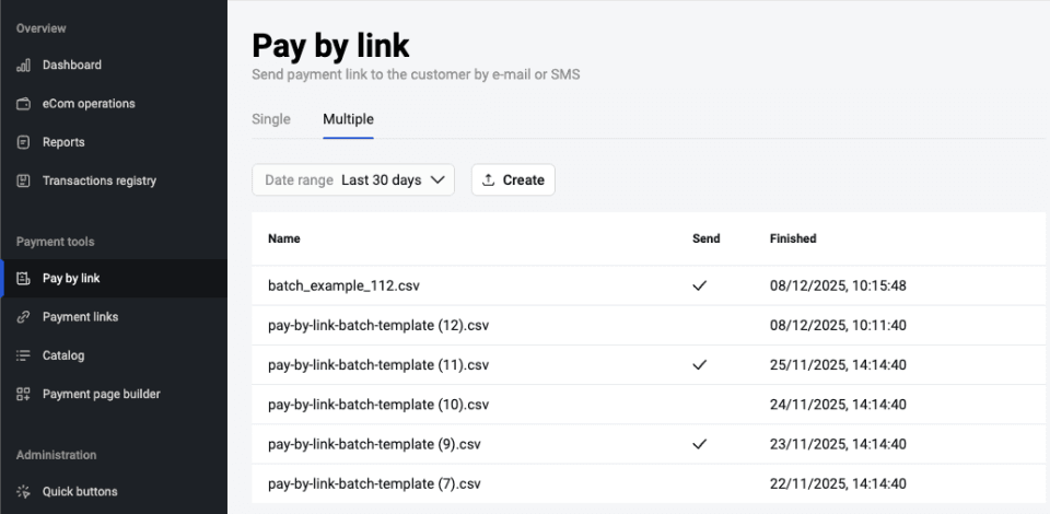 С помощта на API можете да създавате уникални платежни интеграции. Например, да свържете плащане със специално създадена платежна страница. Допълнителна информация за API е достъпна тук. При създаването на Търговец получавате писмо с потребителско име и еднократна парола. След това можете самостоятелно да генерирате парола за API на страницата Работа с API в портала на продавача.