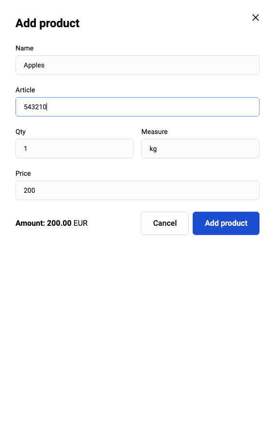 Ще се отвори форма за попълване на информация за продукта.