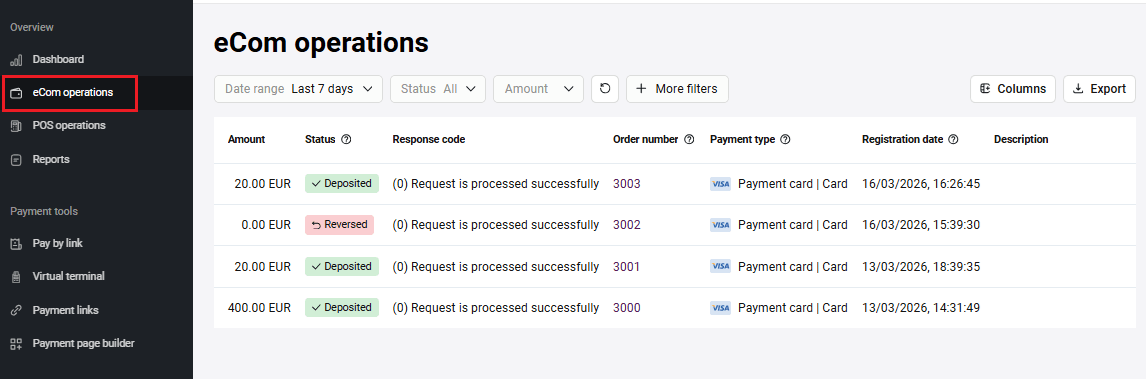 От личния кабинет може да се извърши възстановяване на средства по извършени транзакции (платени от клиенти поръчки, които се намират в статус Завършен). За двуетапните плащания статус Завършен означава, че средствата, намиращи се на картата на платеца, вече са списани.